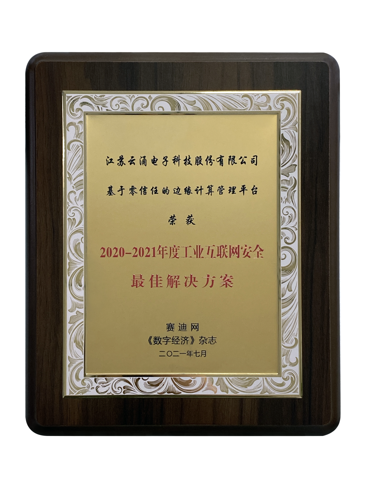 云涌科技基于零信任的邊緣計算管理平臺榮獲“2020-2021年度工業互聯網安全解決方案”的稱譽。