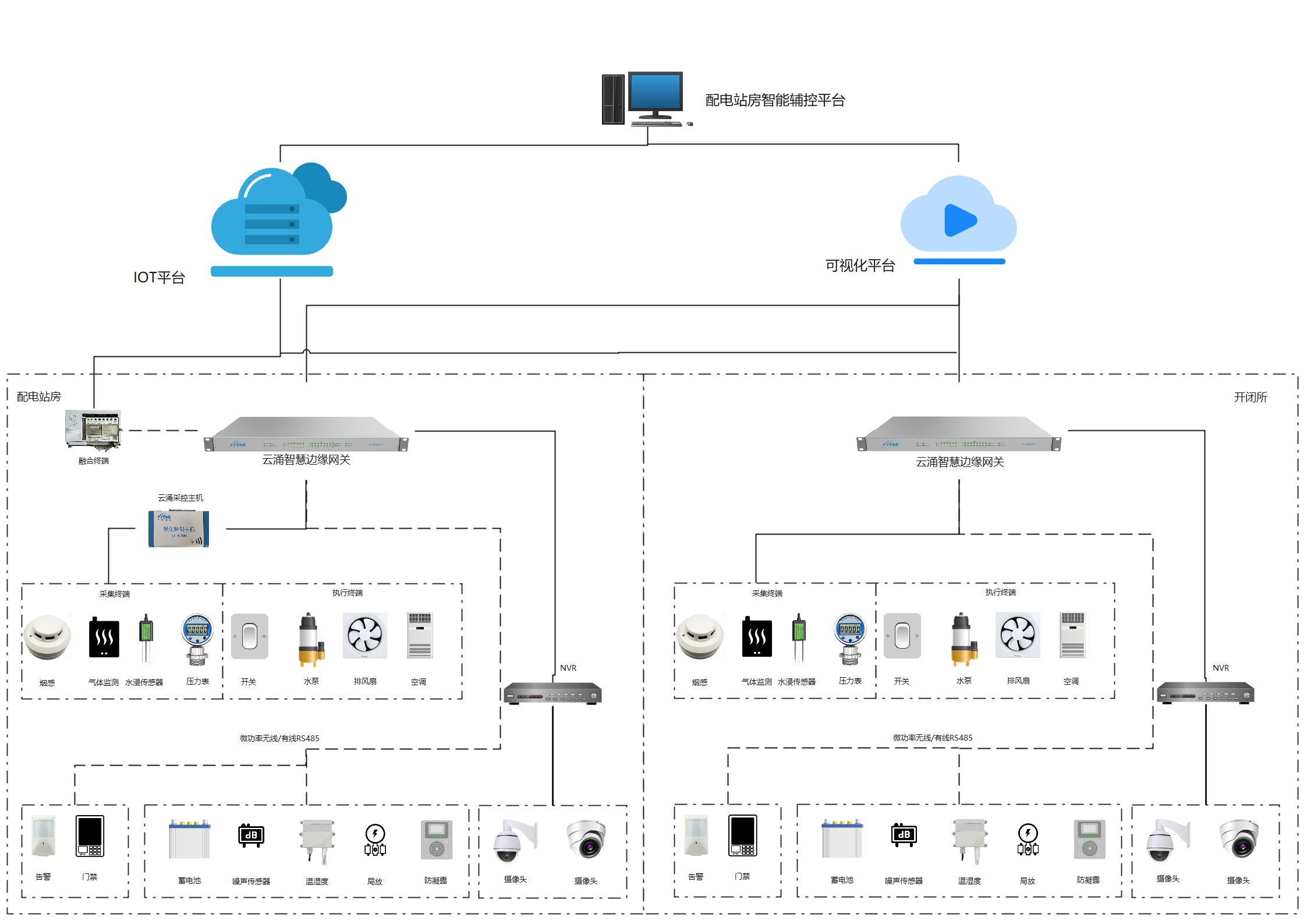 云涌智慧邊緣物聯(lián)網(wǎng)關(guān)是整個(gè)系統(tǒng)的中樞部分,不僅可以在站內(nèi)進(jìn)行實(shí)時(shí)數(shù)據(jù)的采集上傳,還能通過(guò)連接采控主機(jī),實(shí)時(shí)接收站房環(huán)境的數(shù)據(jù)信息,同時(shí)對(duì)于接收到的設(shè)備狀態(tài)、安防信息、視頻監(jiān)控等監(jiān)測(cè)數(shù)據(jù),及時(shí)上傳到IoT平臺(tái)和可視化平臺(tái),最終對(duì)配電站房?jī)?nèi)各功能模塊的信息進(jìn)行存儲(chǔ)、處理及分析,通過(guò)標(biāo)準(zhǔn)協(xié)議傳輸給配電站房輔助監(jiān)控平臺(tái)。此外,邊緣物聯(lián)網(wǎng)關(guān)還可以及時(shí)接收平臺(tái)發(fā)布的智慧控制調(diào)節(jié)命令,通過(guò)啟停相關(guān)設(shè)備來(lái)進(jìn)行環(huán)境調(diào)節(jié),并同時(shí)反饋執(zhí)行情況,設(shè)備傳感器實(shí)時(shí)采集信息反饋,平臺(tái)根據(jù)設(shè)備傳感器實(shí)時(shí)采集到的信息反饋,對(duì)調(diào)節(jié)結(jié)果進(jìn)行再判斷,可實(shí)現(xiàn)不斷循環(huán)優(yōu)化。