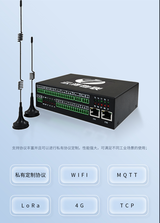 智慧邊緣物聯網關:支持豐富的通訊接口,工業級設計,支持協議豐富并且可以進行私有協議定制,性能強大,可滿足不同工業場景的使用;