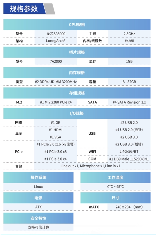 由云涌科技推出的基于3A6000的系列產品,采用4核處理器構建,主頻2.5GHzo,搭配7A2000橋片,1GB獨立顯存,支持2路UDIMM3200DDR4內存條,支持M.2接口,可作為小容量固態(tài)系統(tǒng)盤使用,應用于家用娛樂、商務辦公等場景。