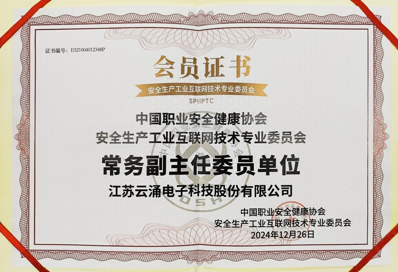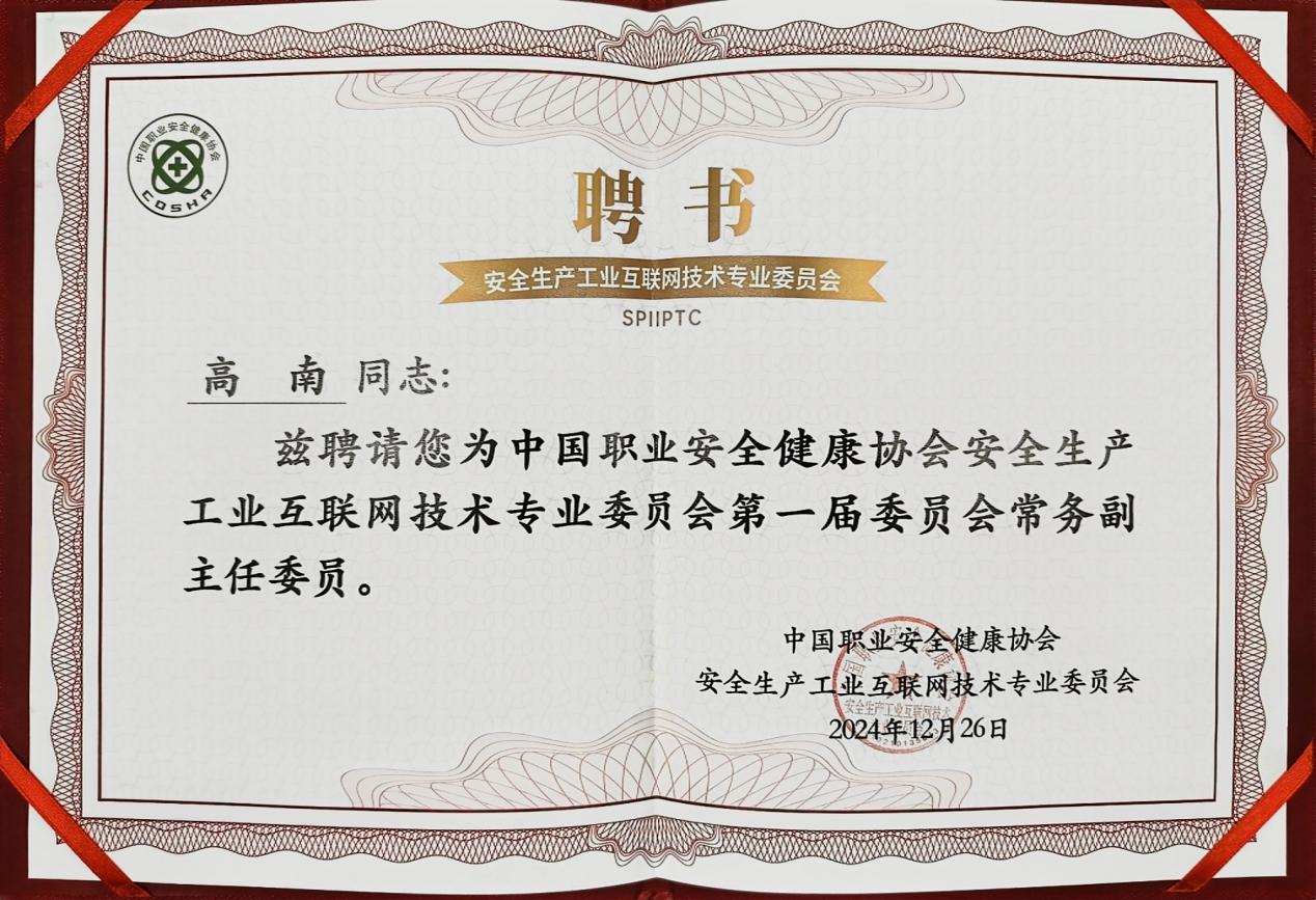 在此次盛會上,云涌科技憑借其卓越的技術實力和行業影響力,榮膺中國職業安全健康協會安全生產工業互聯網技術專業委員會常務副主任單位,董事長高南也被授予第一屆委員會常務副主任委員殊榮,這不僅是對云涌在安全生產工業互聯網領域深耕成果的高度認可,更是對我們今后工作賦予的全新責任與使命。